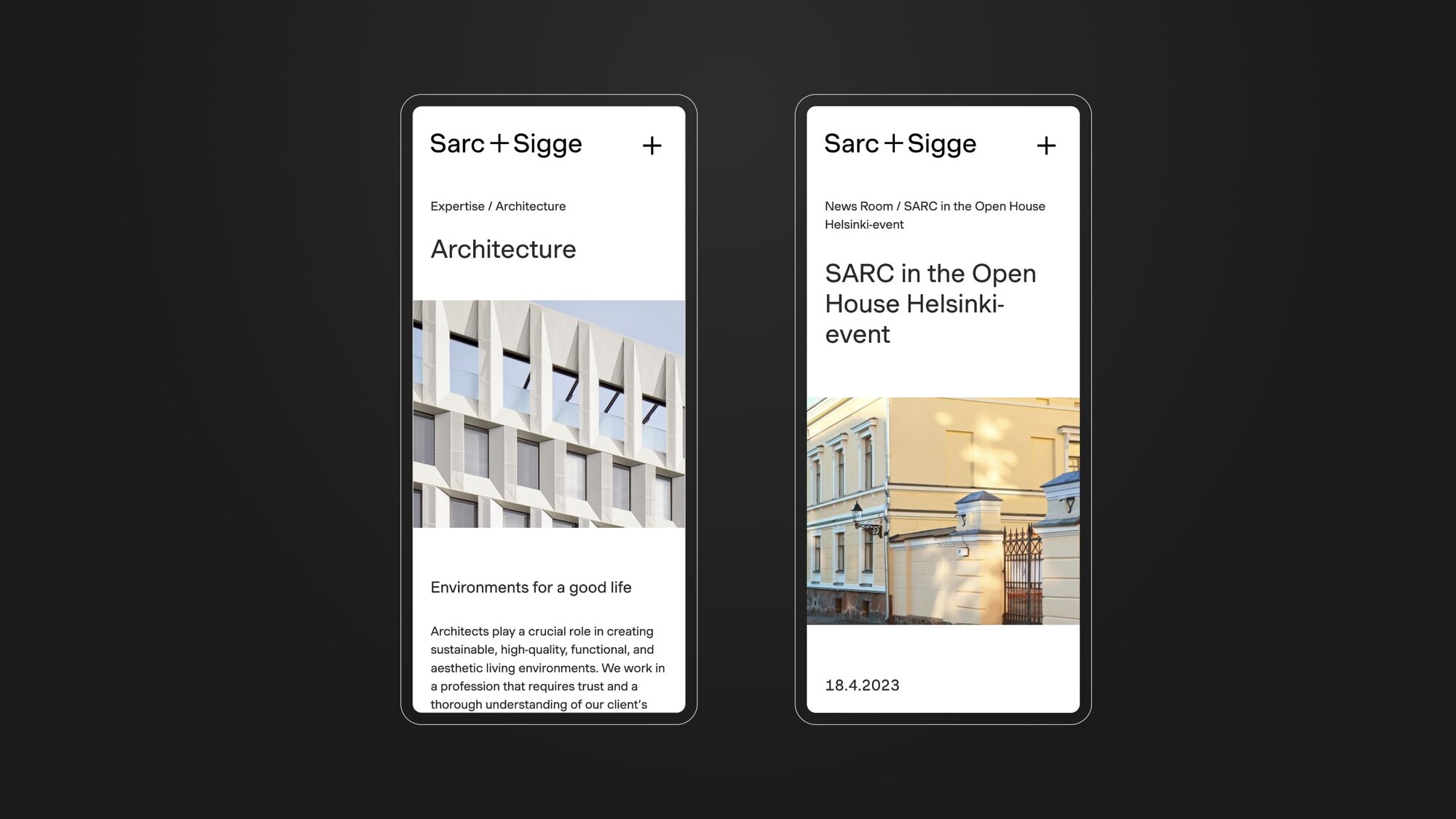 Verkkosivustolla esitellään SarcSiggen palveluita ja keskiöön on nostettu erilaiset projektit. Projekteja voi filtteröidä esimerkiksi projektityypin tai yrityksen asiantuntemuksen mukaan.